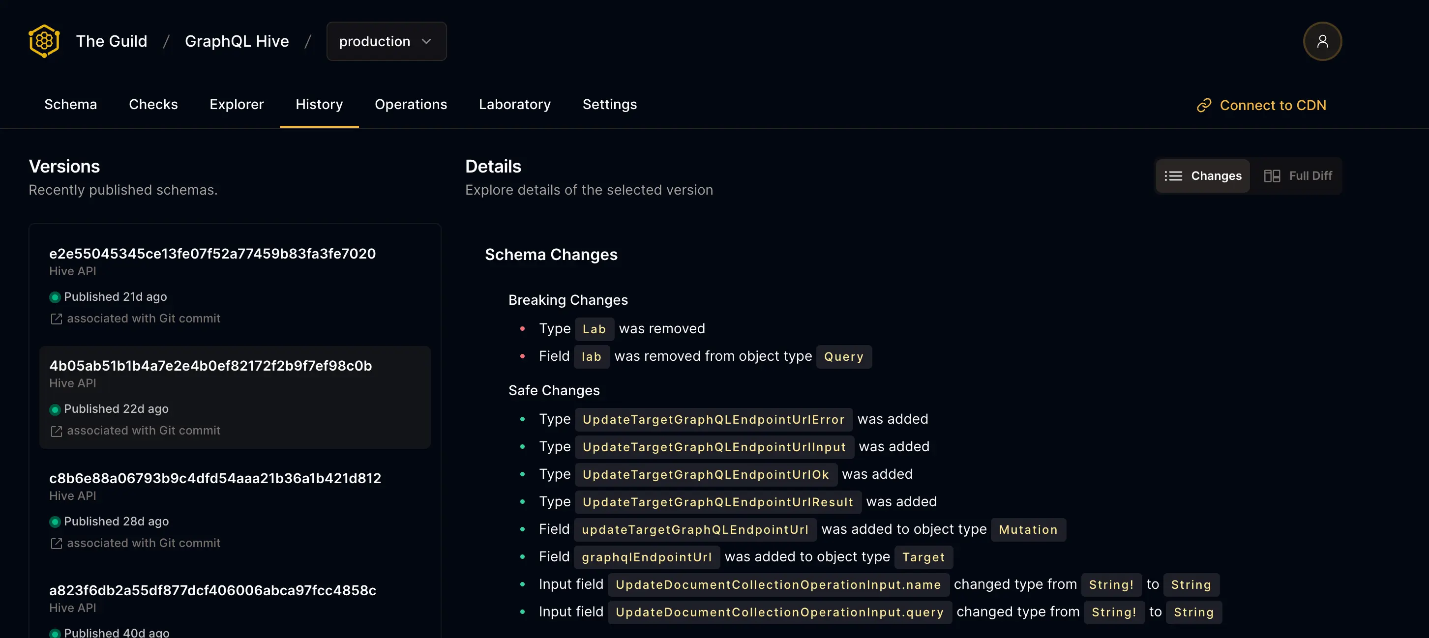 Publish schemas, compose federated GraphQL api, and detect backward-incompatible changes with ease.